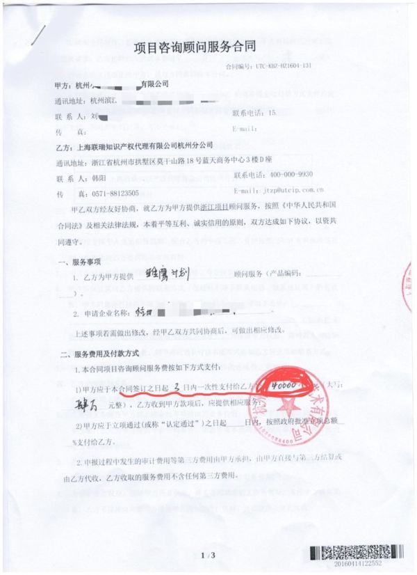 其中,与上海联瑞的这份项目咨询服务合同显示,甲方应在合同之日起3日内,一次性支付给乙方4万元。若甲方未能立项,甲方有权向乙方书面提起退款请求,乙方扣除相应的成本费用0元,并将剩余的款项退还给甲方,且双方同意解除合同。