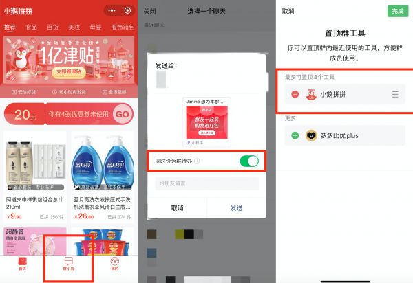 群小店、群待办、群工具使用示例 图:小鹅拼拼