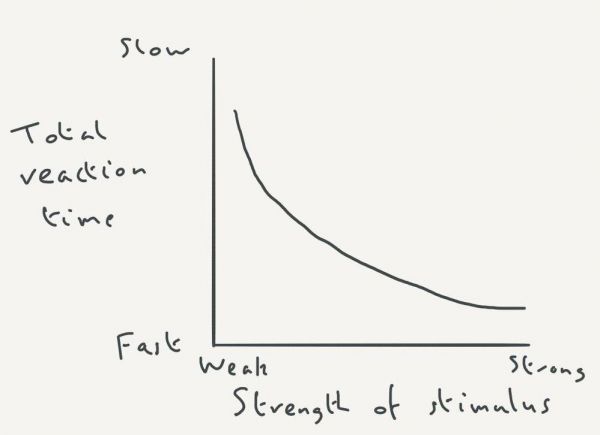 随着视觉信息强度的增加,观察者的反应时间会呈指数下降。视觉信息的强度在这就可以指同向移动点数的百分比。—THE SPIKE
