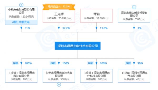 根据企查查提供的工商信息显示:「翔通光电」目前参保人数为143人;公司已获得专利65项,包括“数控机床旋转轴的自动校准系统及方法”等;「翔通光电」目前已完成两轮融资,分别为:2004年3月16日完成的天使轮融资,投资方为南山创投和深创投、2014年10月24日完成的并购融资,投资方为中航光电,具体交易金额均未披露。目前,中航光电拥有「翔通光电」51%的股份。