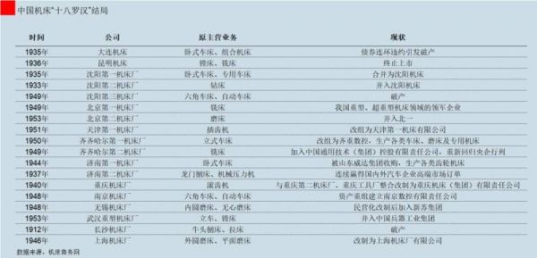 在这样的情况下,中国的机床业几经探索,但顶尖机床绝非一日之功。当年的中国机床行业18罗汉群星闪耀,但最终结局却大多归于黯淡。要么被并入到大的工业集团里,要么被民企并购。