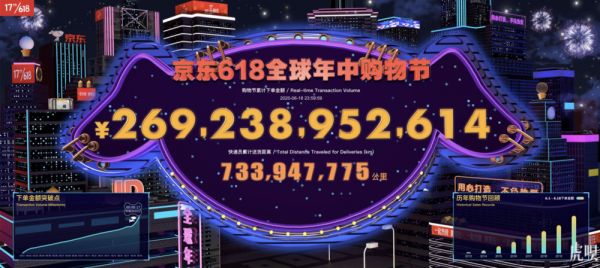 @虎嗅【京东618累计下单金额2692亿元】2020年6月1日0时至6月18日24时,京东618全球年中购物节累计下单金额达到2692亿元。