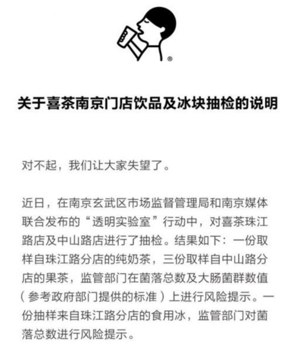 喜茶又因卫生问题道歉