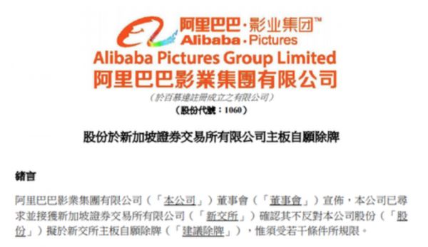 阿里影业新加坡除牌