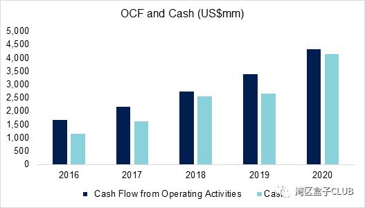 从数据看,该公司过去5年的经营现金流量和现金状况是不错的,基本上一直以20%的复合年增长率增长,仅在20财年就产生了43亿美元的运营现金流。加上融资能力,该公司的现金头寸也以类似的速度增长。