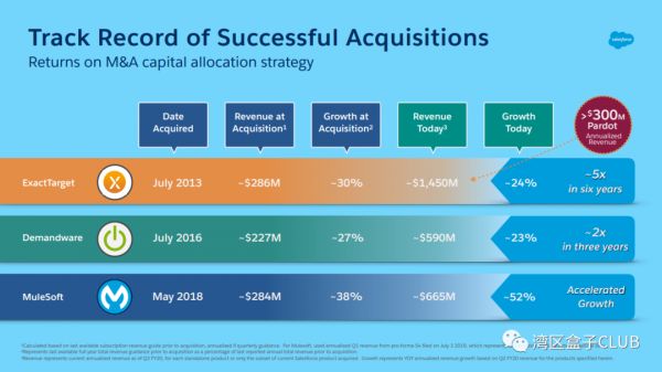 分析认为,收购策略运作良好,尤其是在SaaS行业走向成熟之时。如前所述,SaaS持续获客的难题一直存在,但该策略通过直接收购其他解决方案提供商来解决该问题,从而增加了Salesforce的产品和客户群。