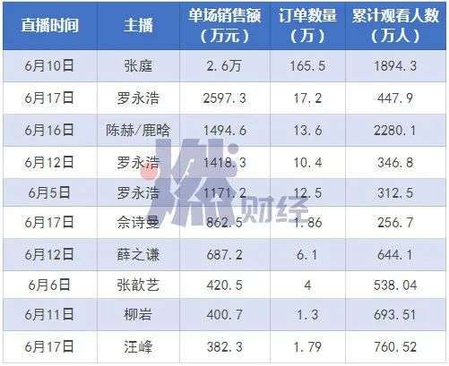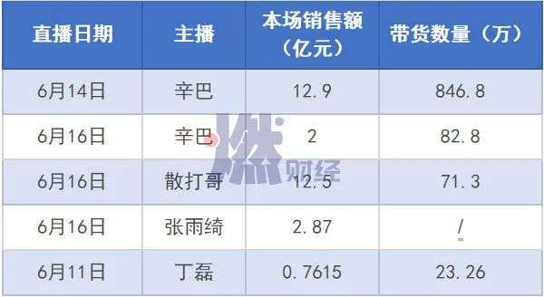 6月1日-18日,淘宝直播明星、大主播带货数据