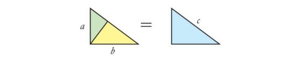 鉴于 E=E(a)+E(b),即 mc²=ma²+mb²。只需要约去式子两边相同的 m,可得 c²=a²+b²。