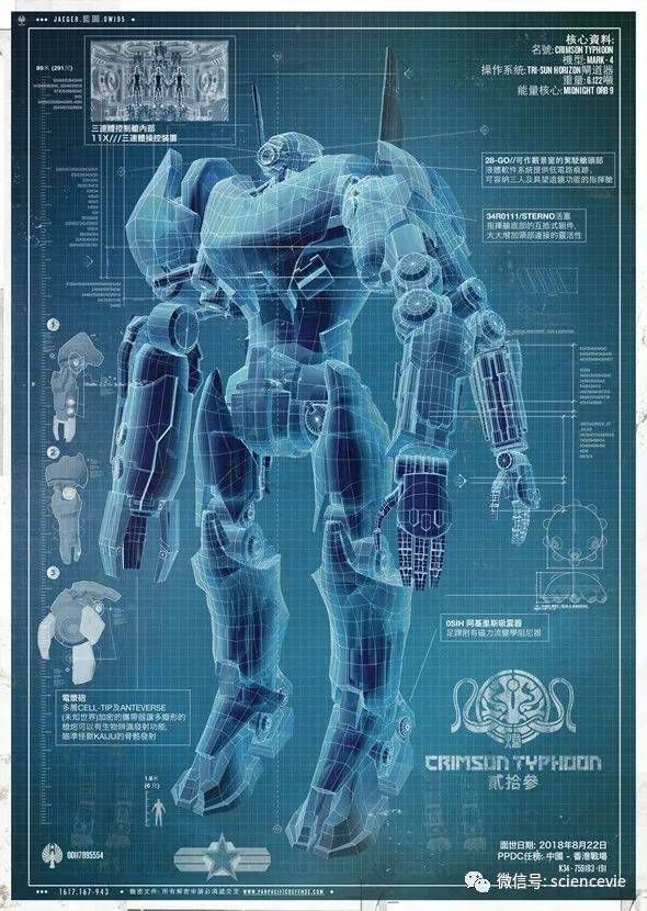 我们始终有着“人形”的情节——《环太平洋》中的机甲显示了人类四肢灵活的优点,由操纵者的双手和双足分别控制机械臂和机械腿,而在机甲关节处有辅助液压驱动设备,以符合人体动力学。