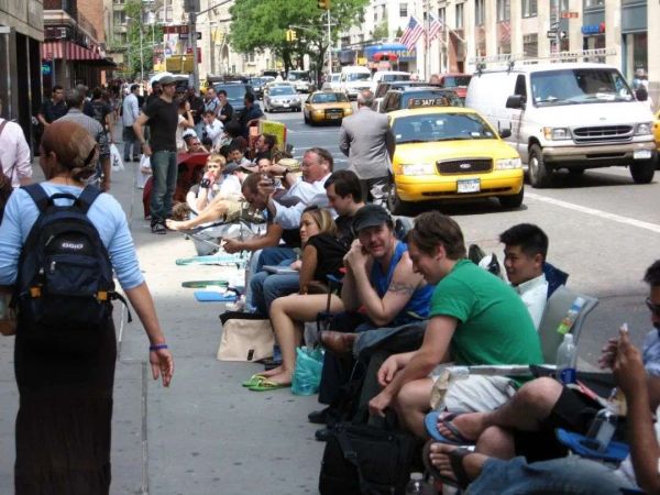 图注:人们在纽约排队等待购买新iPhone。