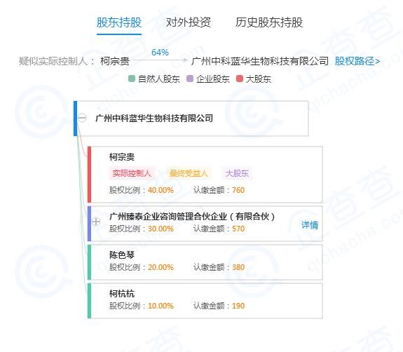工商信息软件“企查查”显示,中科蓝华于2013年1月成立,注册资本1900万元,最大股东及实际控制人为柯宗贵,柯宗贵也是上市公司蓝盾信息安全技术股份有限公司(下称“蓝盾股份”,300297)的最大股东。