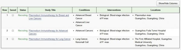 3个疟原虫治疗癌症项目,招募160名患者