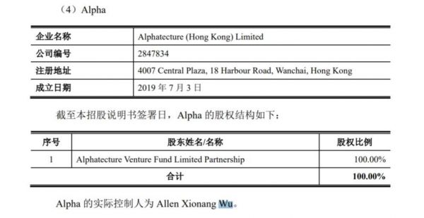 恒玄科技招股书显示,投资人包括Alphatecture,吴雄昂为其实际控制人
