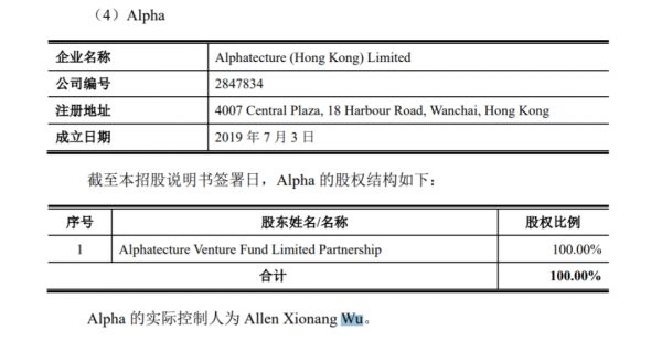 恒玄科技招股书显示,投资人包括Alphatecture,吴雄昂为其实际控制人。