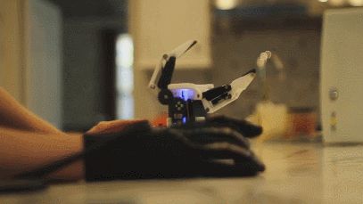 手指部分集成了超过17个电极、传感器以及感应电路,用来检测手部的动作。卷曲或伸直手指时,他们将在这些聚合物传感器组合上施力,接着电路将传感器获得的信息传递到VR设备中。