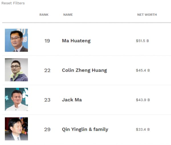 早在4月初发布的第34期全球富豪榜上,黄峥的身家还不到马云的一半。当时,马云以388亿美元的身家位列第一名,第二名为马化腾381亿美元,许家印218亿排名第三,黄峥身家为165亿美元,排名第十位。