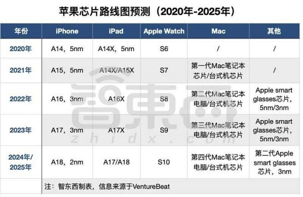 ▲苹果芯片路线图预测(2020~2025年,来源:VentureBeat)