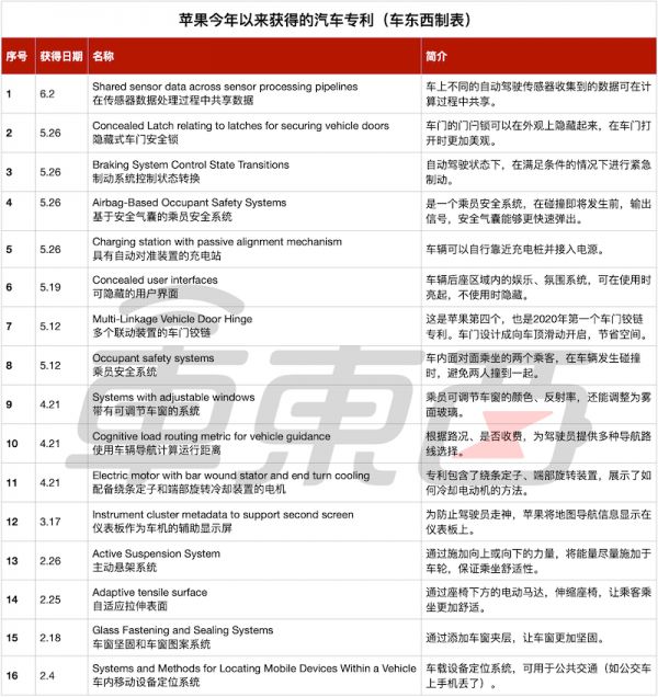 ▲今年以来苹果获得的汽车专利