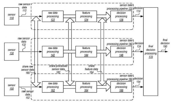根据美国专利及商标局发布的信息,苹果公司在6月2日获得了这项专利,专利名称是“在传感器数据处理过程中共享数据”,也就是说,苹果希望在传感器采集信息之后,进行数据共享,让自动驾驶的决策过程更加精准。