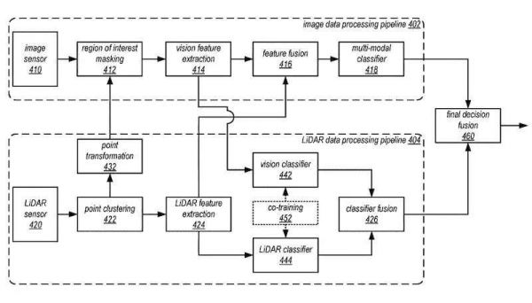 苹果在专利文件中用激光雷达和摄像头两个传感器进行举例。
