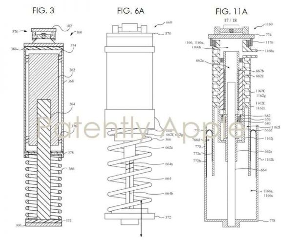 除车门之外,悬架也是苹果一直心心念念的一个车身部件。2019年5月和7月,苹果分别获得了两项汽车悬架专利。此前,苹果希望通过调整悬架的软硬提升不同驾驶状态下乘员的乘坐舒适度,甚至还能减缓乘员晕车的状况、减少轮胎的磨损。