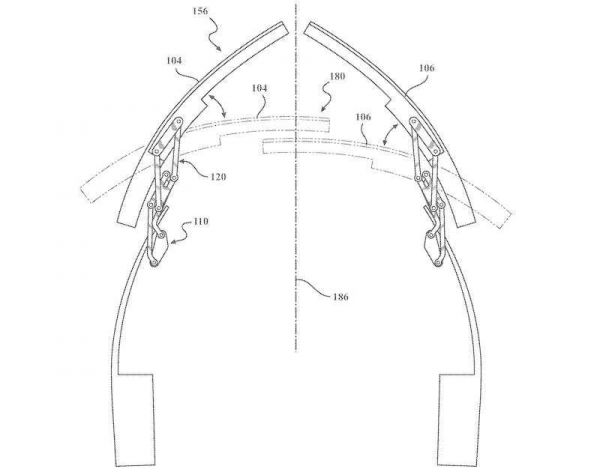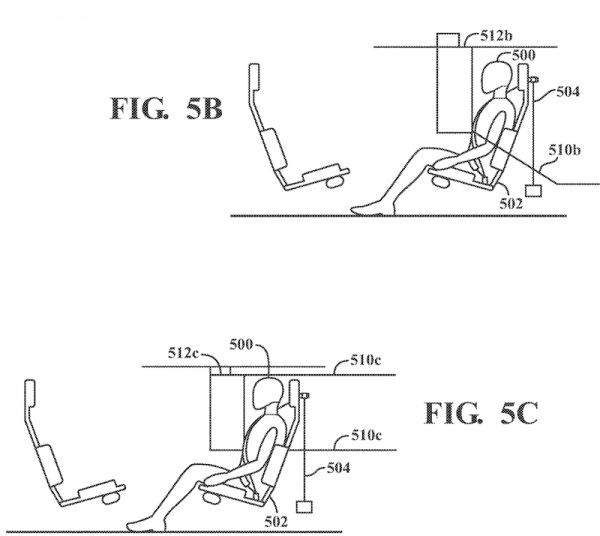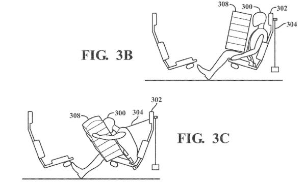 而面对面乘坐的两名乘客之间没有任何支撑表面,即便安全气囊弹开,也可能发生偏移无法起到缓冲作用。于是,苹果在专利中提出了好几种解决方案。