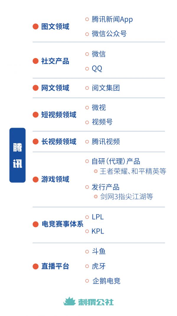 腾讯在互联网内容行业的部分产品分布图