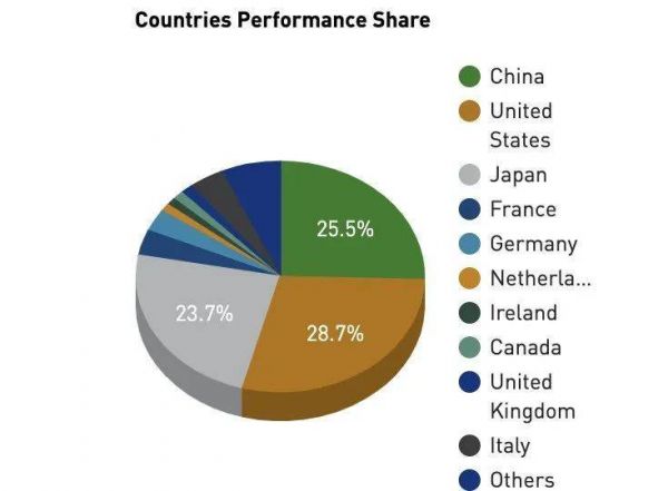 但是,在性能份额(也就是上榜HPC系统所能提供的算力)上,美国114台超算所能提供的计算份额是644PFlops,继续力压中国,565PFlops;日本虽然只有30台,但其可提供的算力为530PFlops,性能份额达到23.7%。