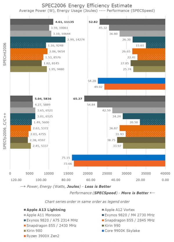 图注:苹果 A13 芯片新能测试吊打其他移动芯片,接近桌面高端芯片。