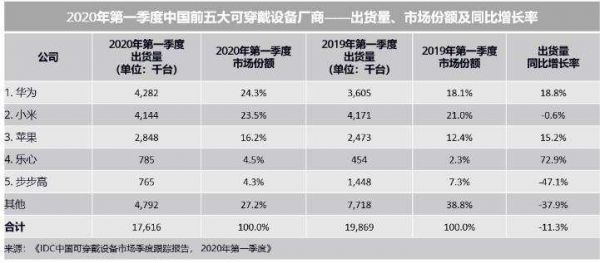 IDC最近发布了2020年第一季度《中国可穿戴设备市场季度跟踪报告》。