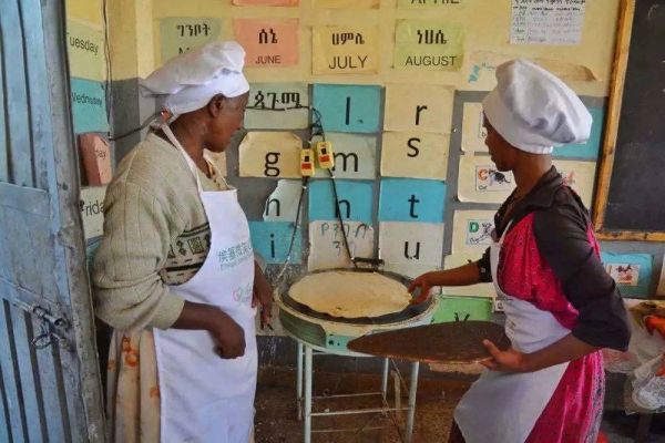 我们最初也没想到,除了供餐,这个项目还能让一些埃塞妇女受益。“妈妈团”的母亲们基本都是家庭妇女,而且文化水平不高,缺乏维持生计的技能。开始供餐后,她们就有了工作,也有了收入,在这个过程中还能获得一些技能。比如她们出去采购,慢慢就明白买东西的时候可以讨价还价,还学会了一些简单财务知识。
