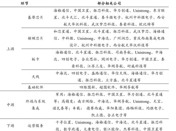 北斗产业链上的部分公司 来源:浙商证券研究所