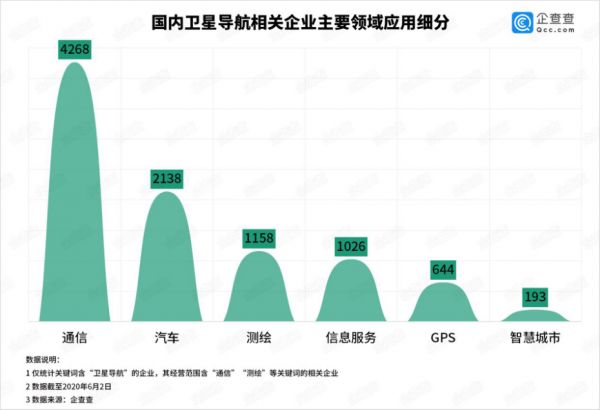 从现有的企业数据,不难发现,北斗开始在通信、车辆导航、信息服务、智慧城市、测绘领域广泛应用。企查查数据显示,卫星导航相关企业主要集中在批发和零售业消费领域、软件和信息技术服务业等专业应用领域,其占比分别为:24.9%和17.99%。