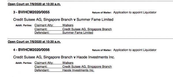 为了挽回损失,由瑞信牵头的包括高盛在内多间银行在英属维京群岛法院起诉Haode,并将于7月6日宣判。