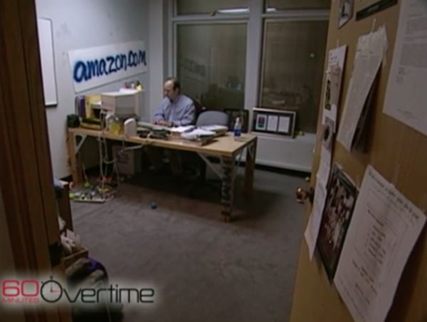 看看这张贝佐斯1999年接受《60分钟》(60 Minutes)采访时的图片: