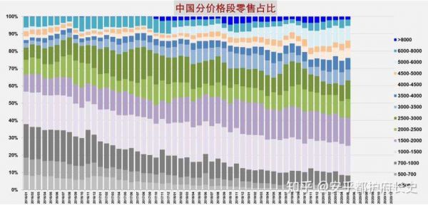 此外,中国市场上,3.5K~8K价格段持续维持高速的增长率,3.5K档位以下则持续大幅衰减,竞争重点持续向高端延伸,而3.5K~8K档位持续高速增长,主要是iPhone11系列的大降价加速了这个过程,伴随着下半年iPhone新品的发布,将进一步放大高端机市场容量。