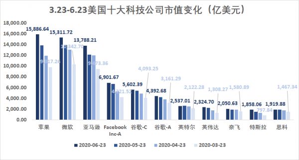 苹果、亚马逊等科技公司股价创历史新高只是美国科技股整体翻盘的一个注脚。在穿越疫情周期、度过“10天4次熔断”的至暗时刻后,美国股市尤其是美国科技股迎来强势反弹。