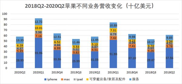 3月份苹果门店大规模关闭造成苹果2020年第二季度iPhone销量大幅下滑。据苹果2020年第二季度(截至2020年3月28日)财报显示,当季iPhone营收289.5亿美元,比2019年Q2的310.5亿美元及2018年Q2的375.6亿美元相比,大幅下滑。