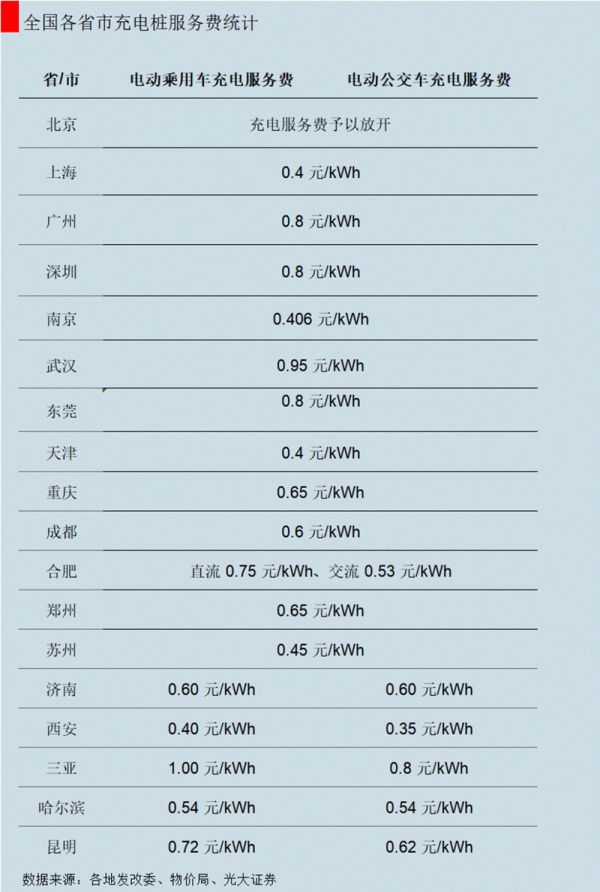 利用率提不上去是一一块心病,服务费运营商们收的也不自由。在服务费这块,由各地政府和发改委自行制定,上限定的死死的。从目前多省市的公告和政策来看,充电服务费有持续下降的趋势。
