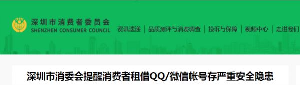 (原标题:封号申诉量超1万例,深圳消委会:租借QQ/微信账号存三大严重安全隐患)