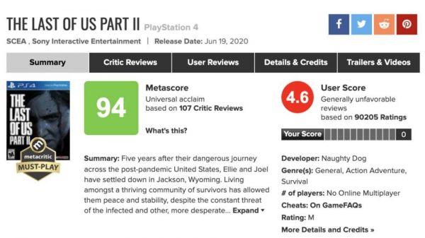 最近游戏圈什么最火?《最后生还者 2》绝对当仁不让,开售 3 天内卖出 400 万份,创下新的 PS4 第一方游戏开售纪录。不过随之而来的也有巨大的争议,低到 4.6 的玩家评分和高达 94 的媒体评分之间的鸿沟也把这款游戏推上了风口浪尖。