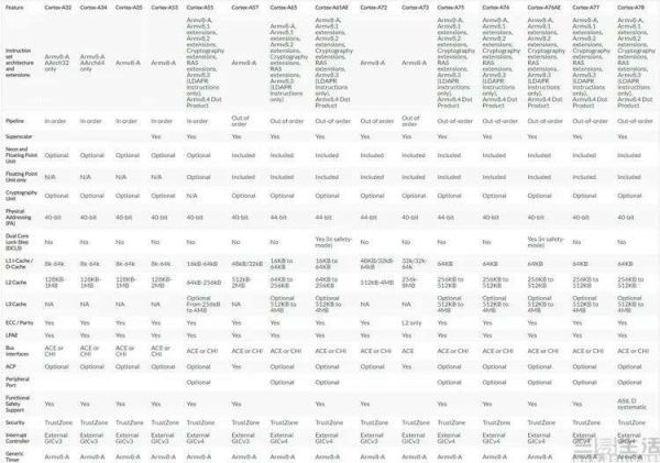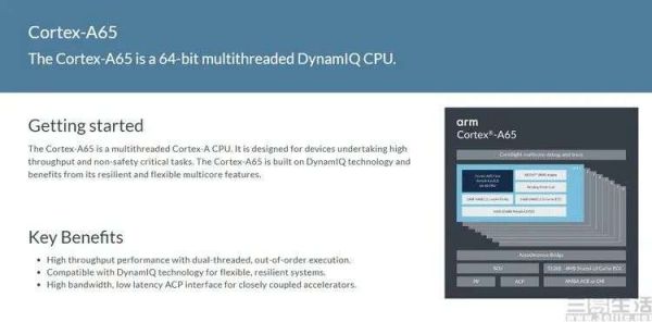 第一是它注重的并非单纯的高能效比,而是在相对(A76这种大核)低功耗的前提下,提供尽可能高的计算吞吐量;第二是它采用了ARM史上首个超线程CPU设计,每核心拥有两个线程;第三就是在“高吞吐量”的指导思想下,Cortex-A65家族完全放弃了对32位指令集的兼容性,成为了一款仅支持64位代码的ARM处理器。