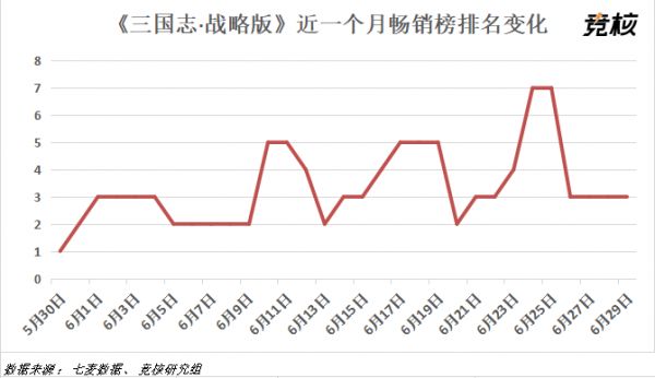 从5月30日至今近一个月的时间里,《三国志·战略版》从未跌出畅销榜单前十,甚至在5月30日当天力压《王者荣耀》和《和平精英》,登上榜首的宝座。