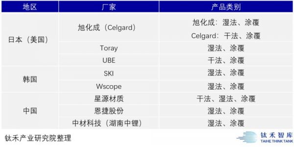 全球锂电池隔膜主要企业