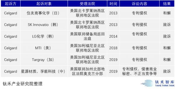 这家2015年被日本旭化成收购的美国公司,现在的主业几乎变成了靠满世界打官司为生——从2013年开始,LG化学、SK、住友、MTI、Targray……但凡有点影响力的隔膜企业,半数都上了Celgard的起诉名单。但尴尬的是,Celgard大多以败诉或和解告终。