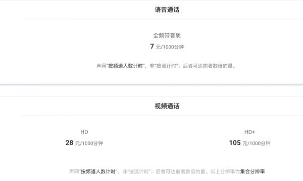 声网音视频收费情况,来自官网