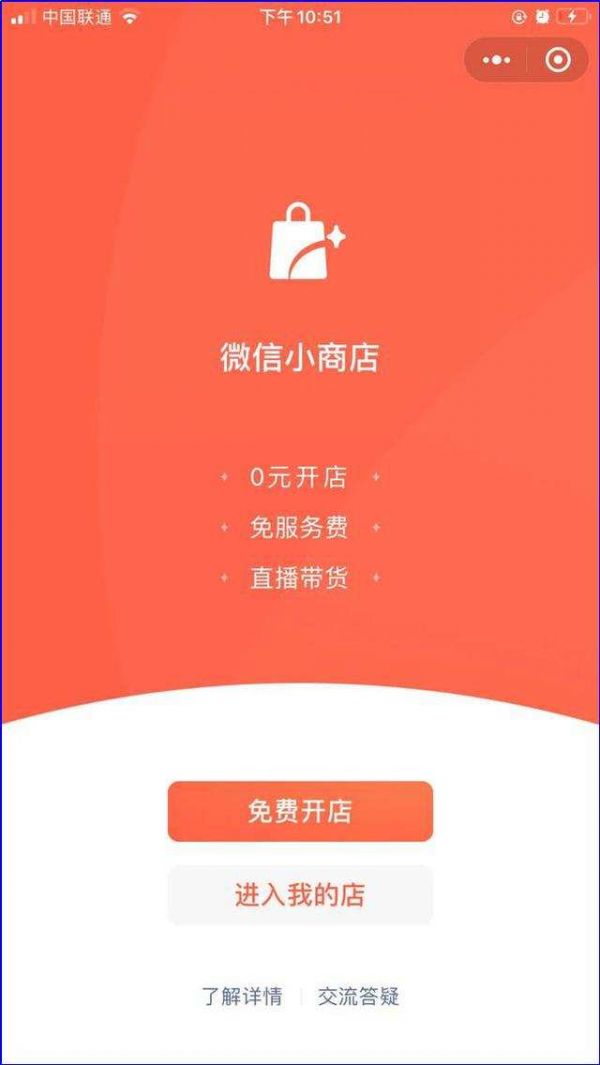 按照官方的说法,微信小商店是小程序团队全新打造的一个快速建店工具,无需开发即可一键开通一个卖货小程序,可免服务费,店主还能直播带货。