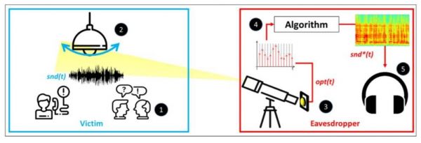 本·古里安大学的安全研究员本·纳西(Ben Nassi)说:“房间里的任何声音都可以从灯泡的光信号中复原,窃听人员只需要通过远程监测,不需要入侵任何系统或在目标房间内置入设备就能知道房间里的声音。”他与同事亚龙·皮鲁京(Yaron Pirutin)和鲍里斯·扎多夫(Boris Zadov)一起开发了这项技术,并计划在8月份的黑帽安全大会(Black Hat security conference)上展示他们的新发现。他说:“你只要能够看到一个悬挂着的灯泡,就足以完成窃听。”