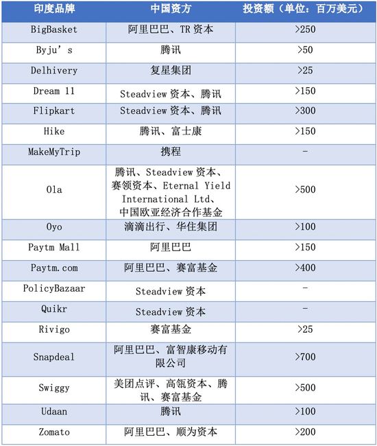 (图表2:印度独角兽公司背后的中国资方。数据来源:印度全球关系智库Gateway House)