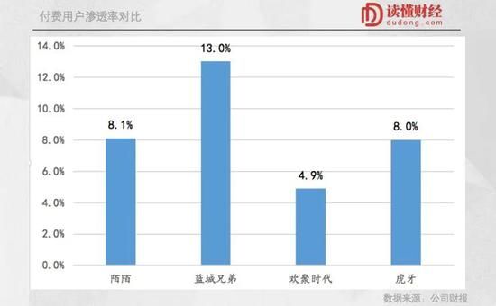 2019年蓝城兄弟直播业务的付费用户渗透率为13%,而主流直播平台的付费用户渗透率在8%左右。